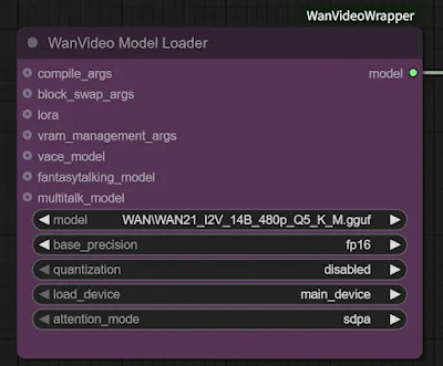 Now, there are two nodes of interest here: WanVideo Model Loader and WanVideo Sampler.